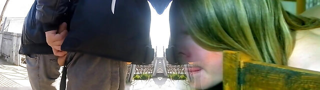 mature man deep-throating cock outside