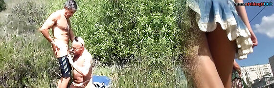 Mature folks fuck in public