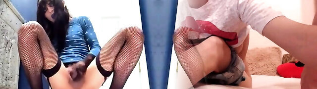 Gothic Emo Crossdresser rides her big fuck stick